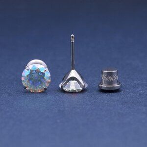 Features: Stunning 6mm cubic zirconia stones set in sleek titanium studs. Designed with a secure screw back for easy, worry-free wear. These earrings offer a luminous, multi-color glow and a smooth, durable finish that’s perfect for everyday wear or special occasions.