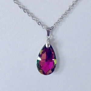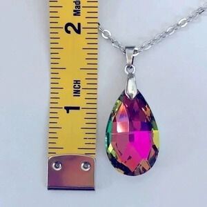 Aurora Crystal Teardrop Stainless Steel Necklace NWT