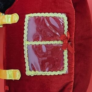 Little reg bag is so soft. Bag has (2) handles for carry. One side of the purse says "Best Friends," and the other side has an attachment where you can add a couple of pictures. Measures 3.5" x 2.5".