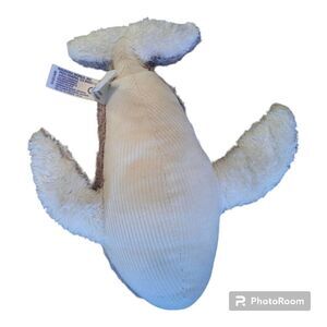 measures 8" from the tip of the nose to the end of the tail. gray on top and a white corduroy underside