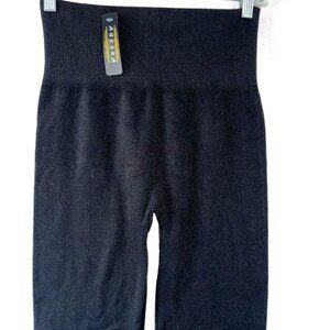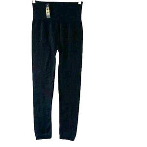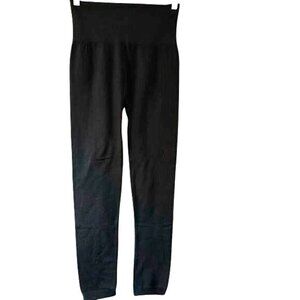 These high-waisted black leggings offer comfort and flexibility, making them suitable for various activities. The seamless design ensures a smooth, flattering fit.