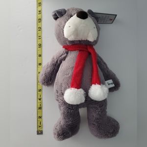 Aurora Lopsie Lulu Benjamin Gray and White Dog Stuffed Animal has a Red and White Scarf. He is very soft and cuddly.