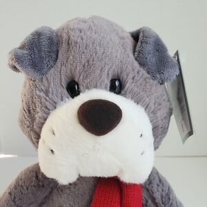Aurora Lopsie Lulu Benjamin the Dog Plush w/Scarf. Grey, Wht, Red Holiday