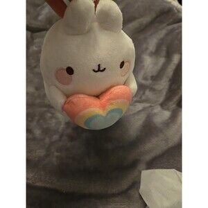 Measuring at 7 inches in height, this Molang is the perfect size for cuddling and playing. Its soft white fur and charming design make it a great gift for Valentine's Day or any special occasion. Bring a little bit of joy and love into your home with this Aurora® Playful Molang Rainbow Heart Molang Stuffed Animal.