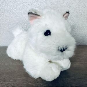 Aurora adorable realistic lifelike plush white Westie terrier dog lab golden retriever tan dog stuffed animal. Excellent like new condition, clean, nonsmoking home.
