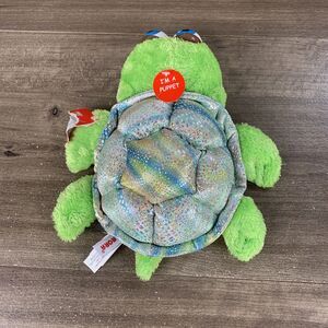 Description: Aurora The Turtle Hand Puppet Green Plush Stuffed Animal Full Body 10" Blue Eyes