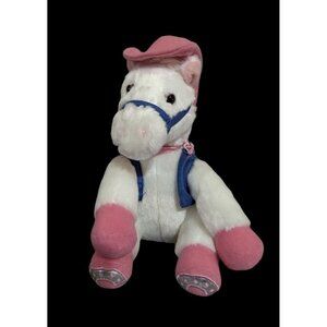 Aurora White Horse Plush Stuffed Animal Bean Bag Western Rodeo Pink Bandana Hat