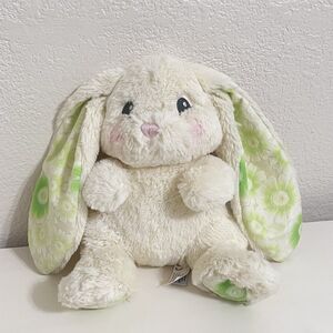 Aurora World Lopsie Wopsie Bunny Rabbit Plush Green Floral 9" w/ TAG. Adorable and so sweet, looks like it is wearing blush! Green floral print material on the inside of the ears and on the footbeds. The original tag is still attached, there was a price tag on the back of the tag that was removed and it took off some of the material on the tag as well. No other issues, has just been sitting in a toy bin. Good Used Condition.