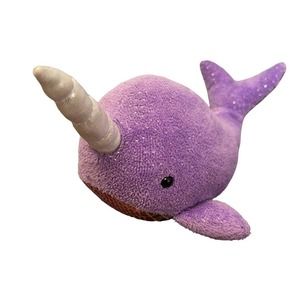 Aurora World Purple Pink Glitter Sparkly Narwhal Plush 10"