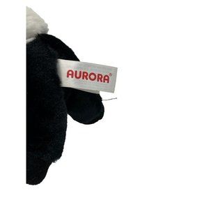 Very cute Aurora skunk with curled tail. This plush measures 7 inches and has brown acrylic eyes and a black plastic nose. Tags are intact and this is very soft.