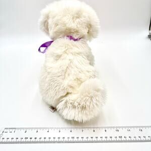 Aurora World White Fluffy Dog Plush Sitting Freckles Pink Tongue Purple Ribbon