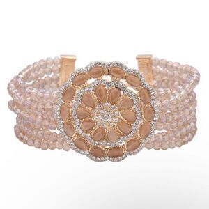 Step into a world where elegance and charm intertwine with our stunning magic glass and Austrian crystal beaded bracelet. This charming piece is not just a bracelet but a symbol of sophisticated grace. It features a mesmerizing multi-strand design for the modern woman, adorned with a simulated gemstone cat's eye brooch that radiates an aura of mystique. The durable bracelet's durable metal ensures longevity, while its adjustable nature and easy-to-use lobster claw clasp provide comfort and versatility. Whether gifting it to someone special or treating yourself, this fancy bracelet is more than an accessory – a treasure that enhances every moment.