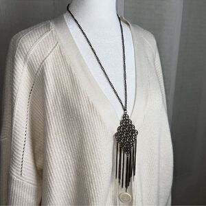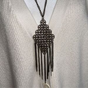 Aurum Brass Tone Caramel Rhinestone Diamond Shaped Tasseled Statement Necklace