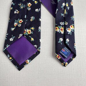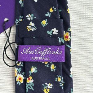 AusCufflinks Men’s Tie NWT Navy Cotton Floral Print Handmade