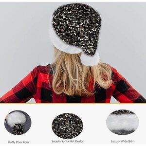Ausejopeac 2PACK Black Christmas Hat for Adults, Personalized Sequin Santa Hat
