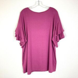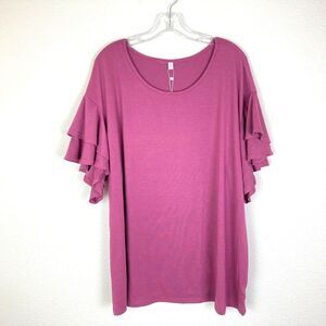 Auslook NEW Women's Knit Top Size 2X Pink Stretch Ruffled Sleeves