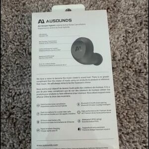 Ausounds True Wireless Earbuds with Hybrid Active Noise Cancellation (ANC). These earbuds are designed for high-quality sound with active noise reduction for a better listening experience. They come in a sleek case for storage and charging and are compatible with most Bluetooth-enabled devices.