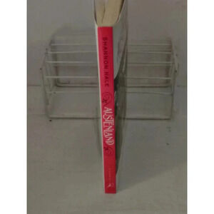 Pre-owned paperback book, "Austenland" by Shannon Hale. The book measures approximately 7.25" x 4.25" x 1". It features a color cover depicting characters in period clothing. The cover shows minor shelf wear, including slight creasing and edge rubbing. The spine is intact, with the title and author clearly visible. The pages appear to be in good condition with no visible markings or tears. The book is approximately 300 pages. The binding is secure. The overall condition is good, reflecting typical wear from previous use.