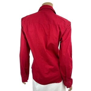 Austin Clothing Co Red Ruffled Blouse Sz M Long Sleeve Button Front Cotton/Spand