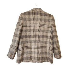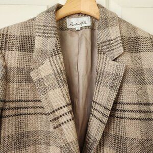 Austin Hill Beige Brown Plaid 100% Wool Blazer Jacket Preppy Winter Work Office