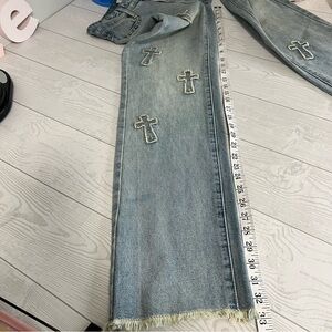 Excellent condition - mid rise straight leg embellished jeans size 1.