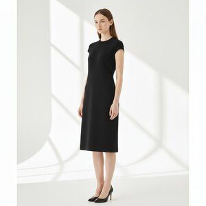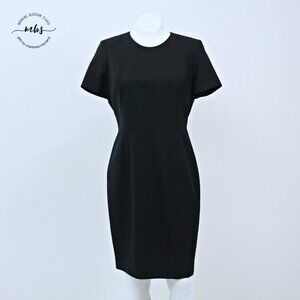 Austin Reed 100% Wool Short Sleeve Split Back Midi Dress Black Women 8P