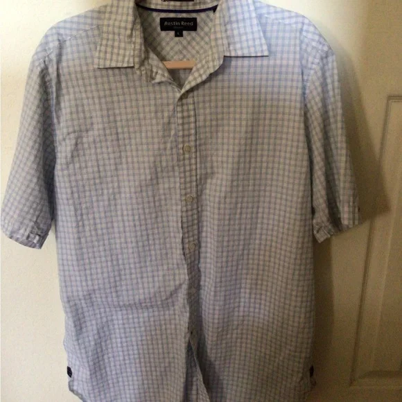 Austin Reed men’s button down short sleeve shirt in used excellent condition. The shirt is a SZ large with no rips, stains, tears, or odors. Smoke free home.