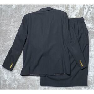Austin Reed Black Wool Gold Two Button Blazer Matching Skirt Suit Womens 12