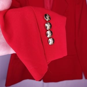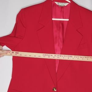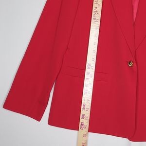 Austin Reed Blazer 12 Red Wool Gold One Button Vneck Collar Pocket Jacket Vtg