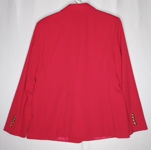 Austin Reed Blazer Women 12 Red Wool Gold One Button Vneck Collar Pocket Jacket Vintage Classic