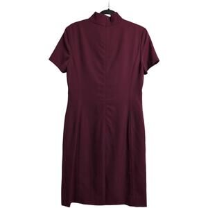 Austin Reed Burgundy High Neck Short Sleeve Worsted Wool Dress Vintage Size 10