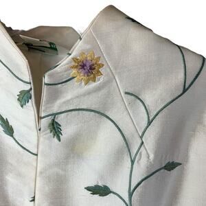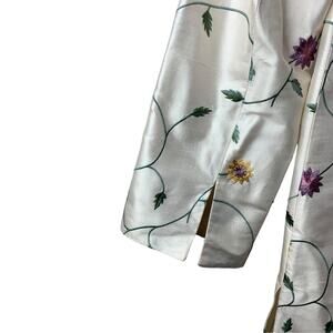 Austin Reed Coat Womens 12 White Embroidered Floral 100% Silk Long Jacket