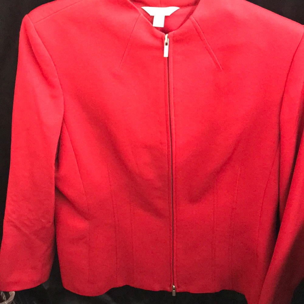 Red jacket nicely lined, excellent condition, long sleeve, zips up the front