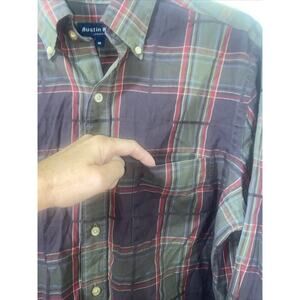 Austin Reed London Long Sleeve Button Down Oxford Plaid Shirt Men's Medium