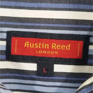 {Austin Reed London} Men's Large Blue White Striped Button Down Dress Shirt