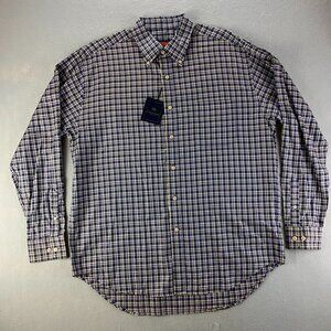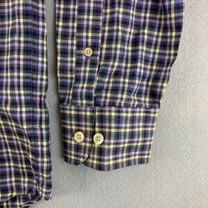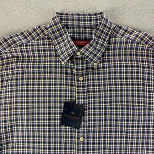 Austin Reed Shirt Mens Extra Large Blue Brown Yellow Plaid Cotton Button Down