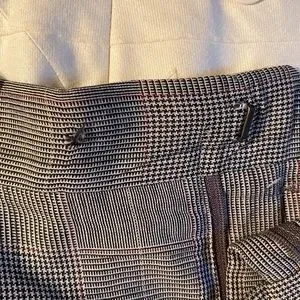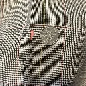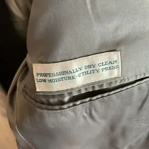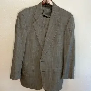Previously owned. Good condition. Minor imperfections on jacket, small hole on pant leg with missing button, and slight rip on clasp. Sold as is.