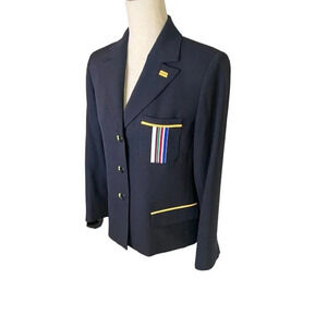 Austin Reed USA Womens 10 Petite Navy Wool Blazer Jacket Preppy Prep School Boy