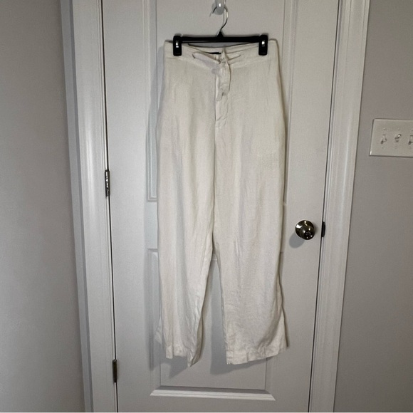 Austin Reed Wide Leg White 100% linen Pants Women’s Size Large Boho Beach