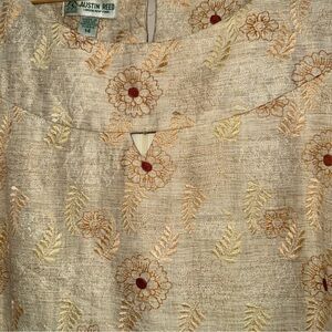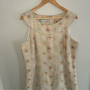 Austin Reed Womens Tan Sleeveless Embroidered Orange Flowers Dress 14