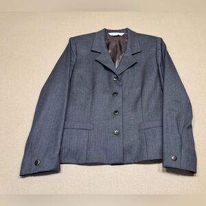Elegant gray blazer by Austin Reed. Features a classic button-up design. Perfect for formal occasions. 100% Worsted wool