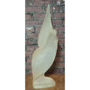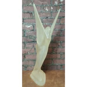 This is a frosted acrylic lucite butterfly nymph woman sculpture by Austin productions in the 1980s. She is 26.75 inches in height, 10.75 inches in depth, and 11.25 inches in width. She the yellowish color.