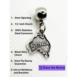 * High-Quality Materials: Crafted with a stainless steel connector and a metal alloy charm, this australia map charm ensures longevity and resistance to tarnish, making it a timeless piece of charm australia.