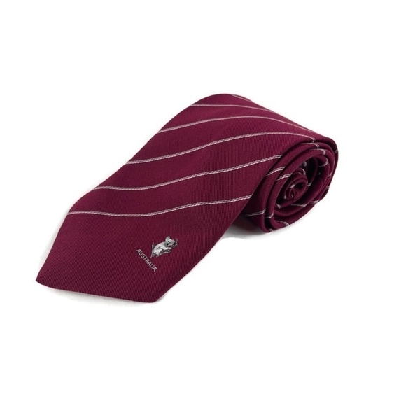 Australia Mens Tie Red Koala Striped. 100% polyester, dry clean only.
