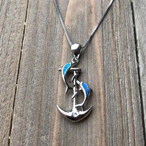 The Australian Opal Dolphin Anchor Necklace, both elegant and beautiful, is hand-crafted with the finest materials that are sure to give you that "beachy look." This amazing piece is perfect for the beach bum in your life!