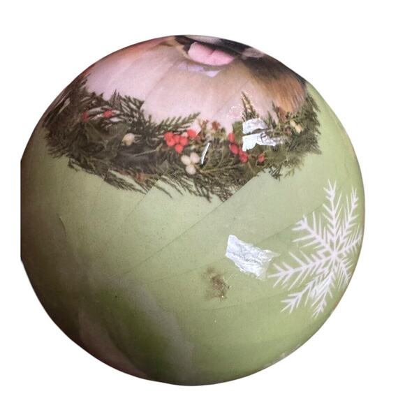 There is a dark spot on one side of the ornament. Box has some storage wear.