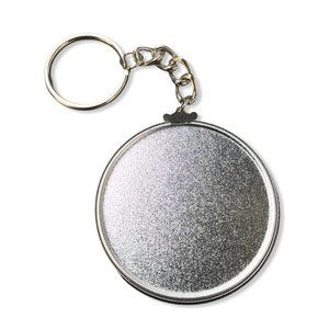 This handmade, button style keychain’s artwork measures 2.25" in diameter, with the chain and key ring it measures approx. 5" total. The image appears on one side of the keychain and the other side has a metal finish. These keychains make a cute gift for any occasion!
