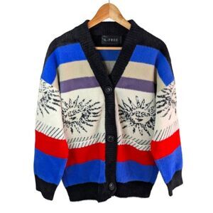Australian Wool Blend Sun Graphic Cardigan Striped Celestial Large