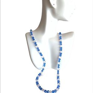 Austria Blue crystal + clear square crystal vintage sparkling necklace