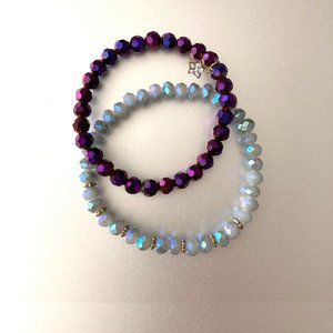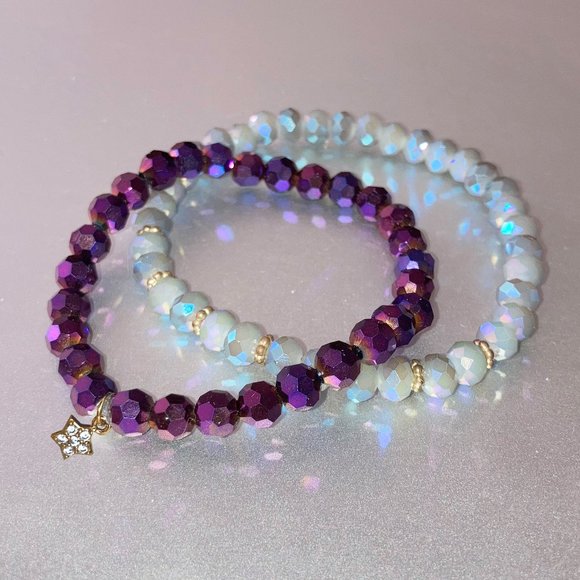Austrian Crystal Beaded Bracelets with gold plated CZ star charm, Set of 2